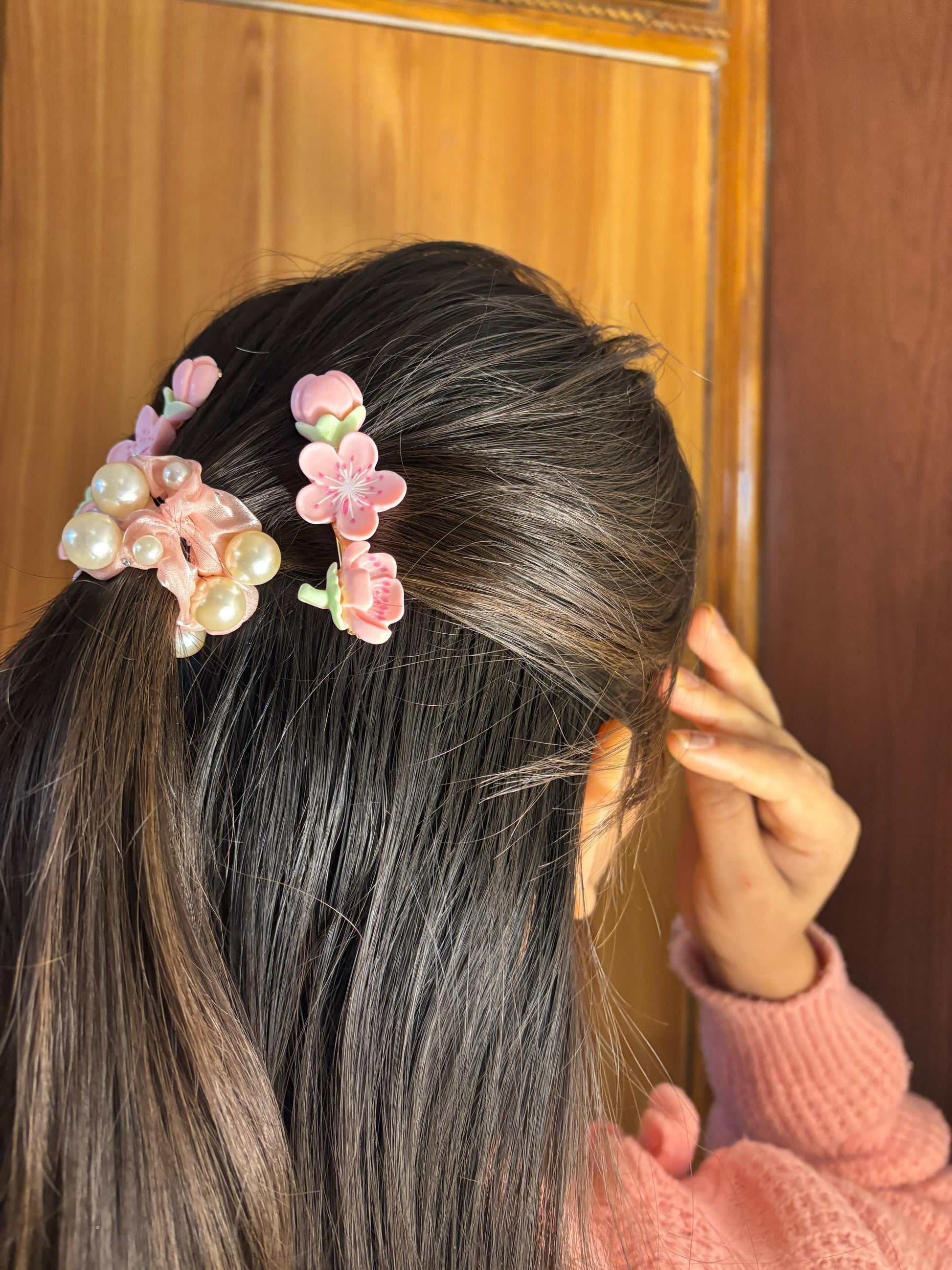 - Pink flower hair clips (pair) β Translucent pink floral hair accessories